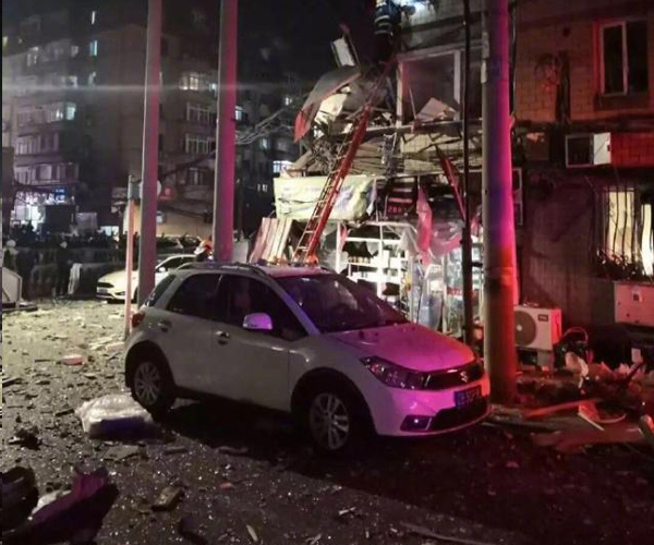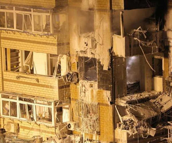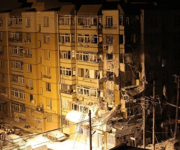 1月8日从中共大连市委宣传部获悉,8日19时10分许,辽宁省大连市西岗区八一路一居民楼发生煤气爆炸事故,造成9人受伤,目前伤者已全部送至医院救治,均无生命危险,现场明火已被扑灭。图为居民楼煤气爆炸事故现场。